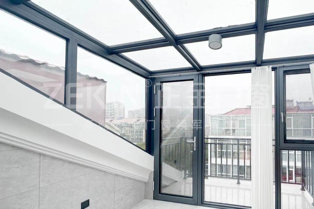 陽光房采用隔熱多腔體斷橋型材+PA66隔熱條,