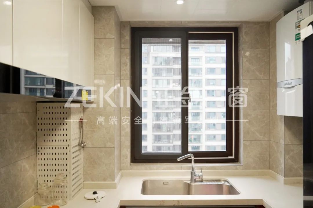廚房采用推拉窗設(shè)計,