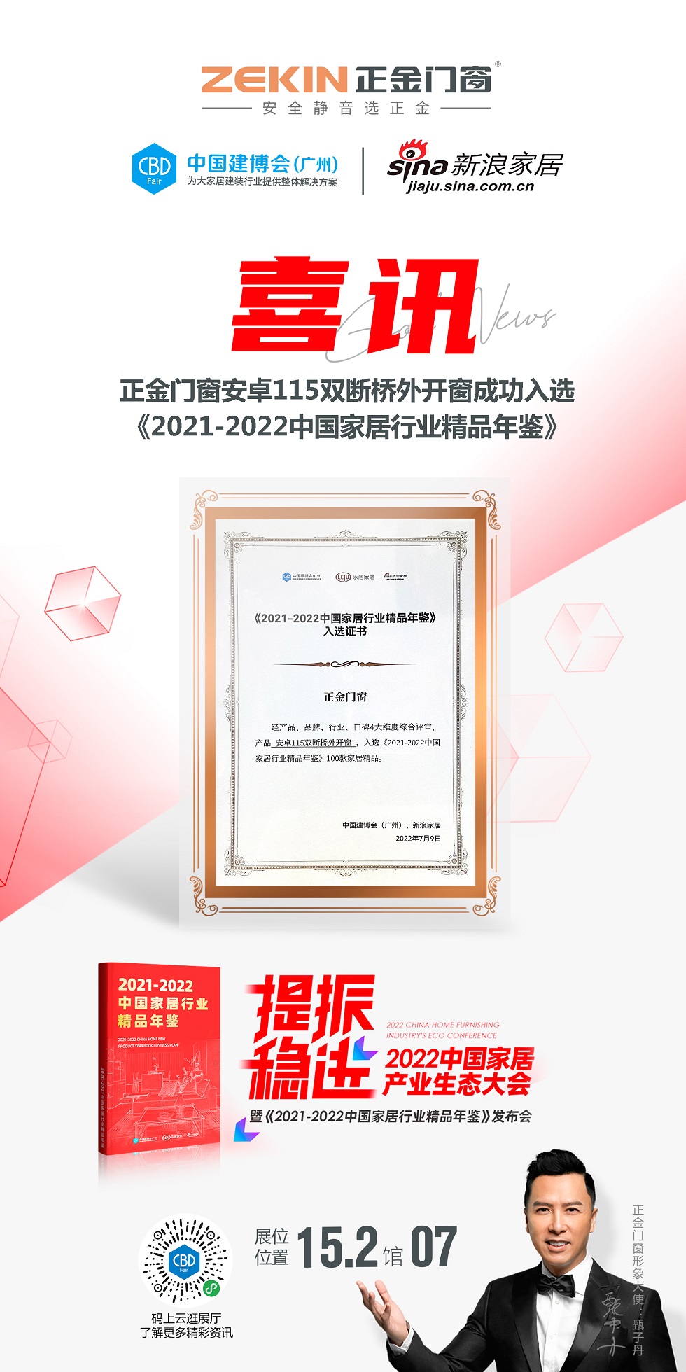 熱烈祝賀正金門窗安卓系列雙斷橋平開窗成功入選《2021-2022中國家居行業精品年鑒》以榮譽見證產品硬核實力用行動詮釋品牌價值