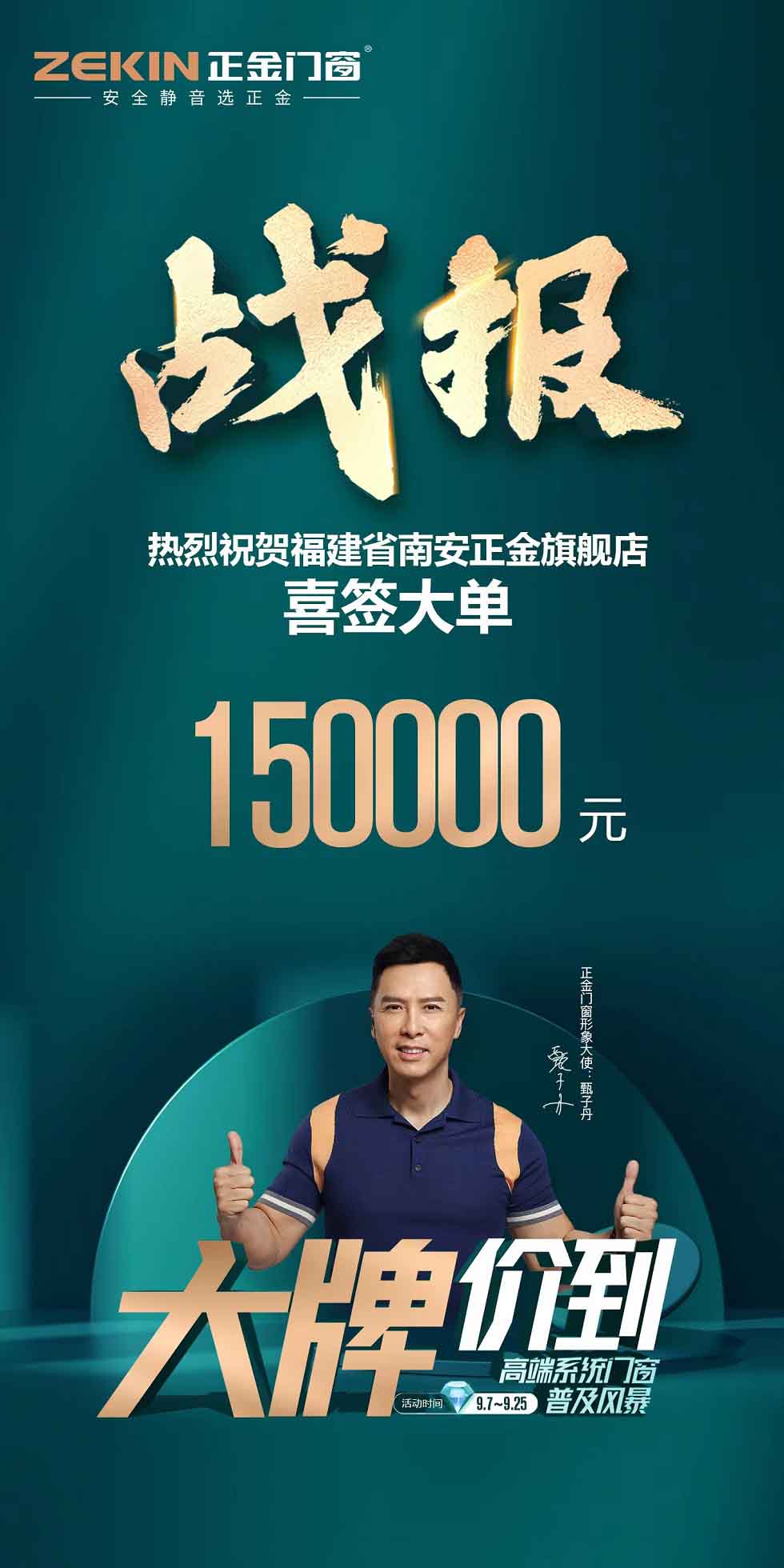 門窗十大品牌高端系統(tǒng)門窗要有甄功夫 恭喜以下正金專賣店價 喜簽大單 業(yè)績長虹