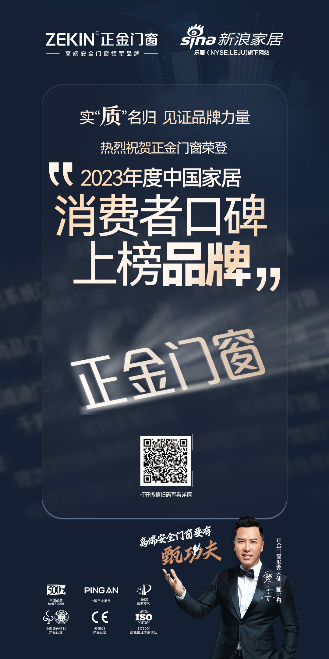 門窗十大品牌:熱烈祝賀正金門窗 榮登“2023年度中國家居消費者口碑上榜品牌”