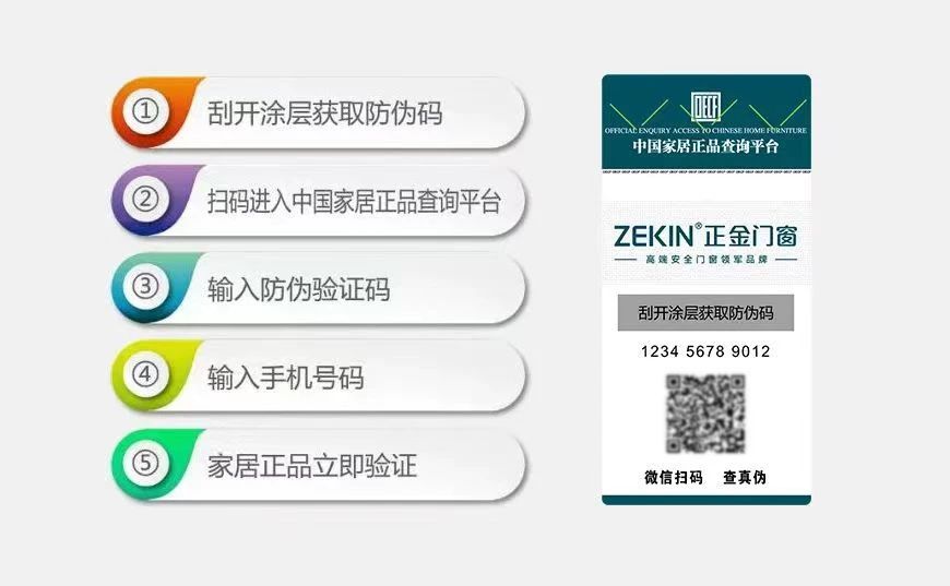 為了確保正金門窗產品的品質,正金門窗啟用中國家居正品查詢平臺”,防偽查詢系統使用指引全渠道覆蓋,通過防偽標簽技術實現“一品一碼”,最大限度地識別假冒產品,確保讓消費者買到正規品牌,切實保護消費的權益。真正讓消費者買著放心,用著省心。 正金門窗維護品牌形象,規范終端市場,營造正規有序的消費環境,為廣大用戶提供強有力的權益保障。真正讓消費者實現購買家居產品有“案”可查,避免買到假冒偽劣產品,確保消費者購買到健康安心的家居產品。