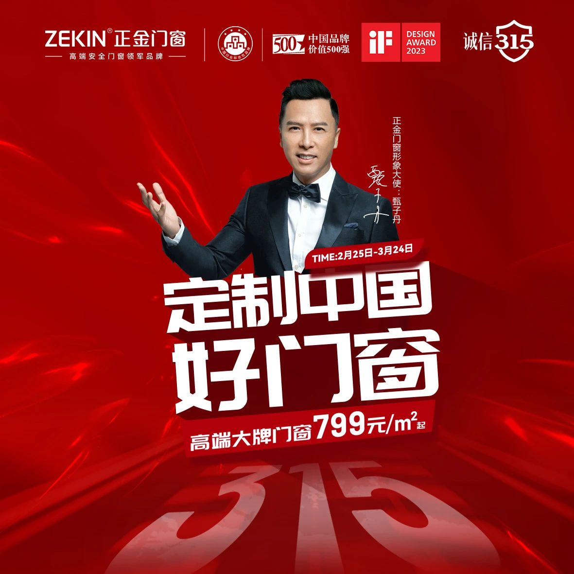 315消費者權益日,正金門窗與廣大用戶一起,堅決打擊假冒偽劣產品,繼續用質量與服務踐行品牌誠信之魅力,大力維護廣大消費者的權益。2月25日-3月24日,正金門窗全國聯動燃爆終端,全國800家專賣店恭候你的光臨,多款明星爆品低價高端讓利,以高性價比“質”享新家;為你開啟寵粉新姿勢!