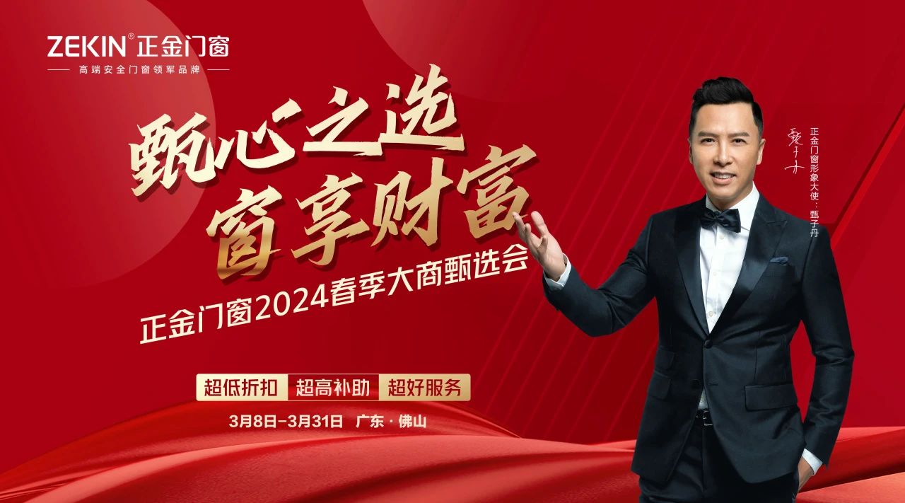 3月8日,“甄心之選 窗享財富”正金門窗2024春季大商甄選啟動會在總部舉行。門窗大市場,搶占新賽道!加入正金門窗,成就事業夢想!抓住萬億紅利坐擁財富,正金門窗邀您品鑒!